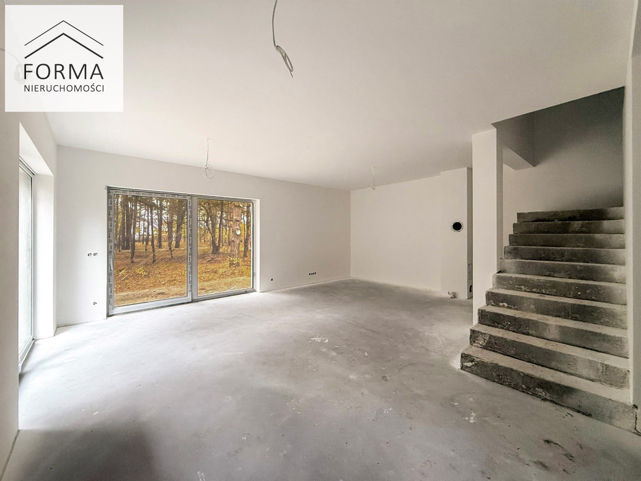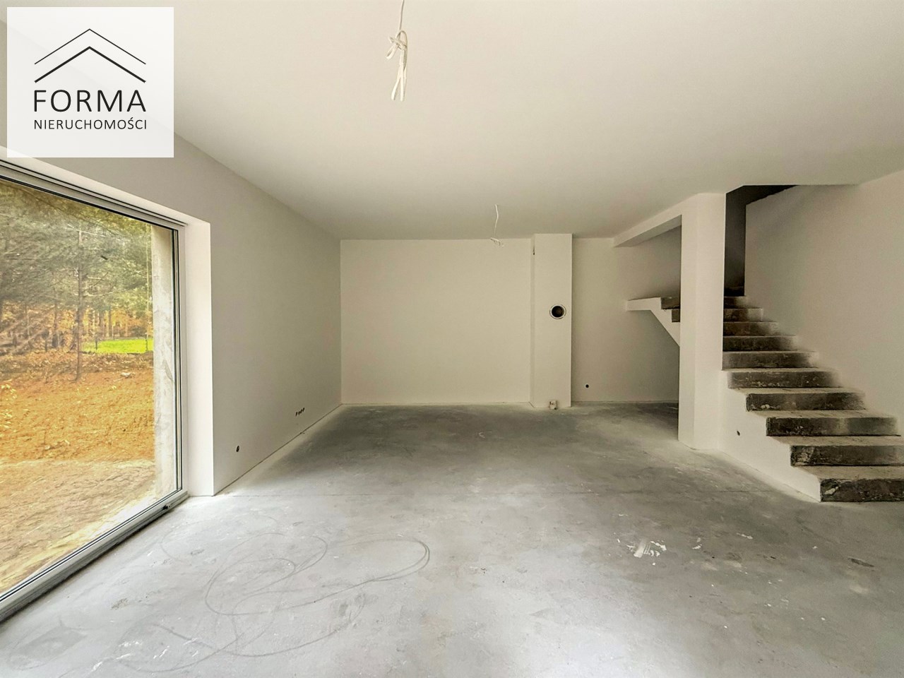 Dom znajduje się w lesie sosnowym, co przez piękne duże okna czuć we wnętrzu.