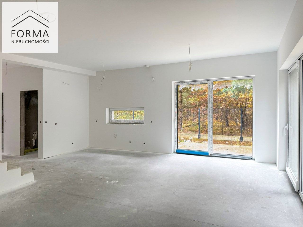 - W salonie znajdują się panoramiczne okna HS z widokiem na las