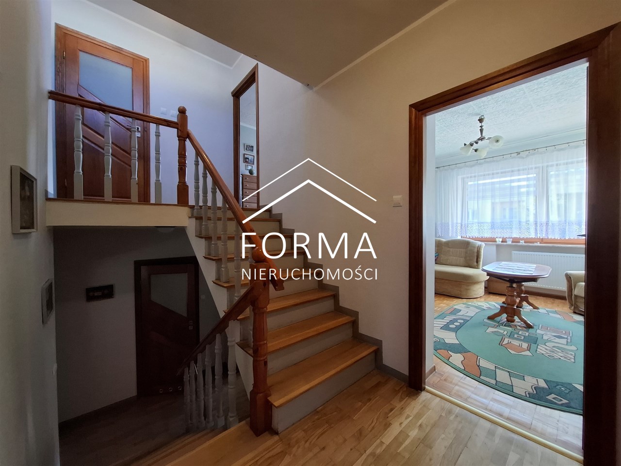 Nieruchomość oferuje komfortową przestrzeń dla większej rodziny, a liczne modernizacje sprawiają, że dom jest gotowy do zamieszkania. Dom o powierzchni użytkowej 136 m² został wybudowany w 1993 roku. Budynek jest w pełni podpiwniczony oraz posiada garaż w bryle budynku, który pomieści dwa samochody. Z tyłu domu znajduje się ogród z trawnikiem, który daje możliwość własnej aranżacji i stworzenia przyjemnej przestrzeni wypoczynkowej.