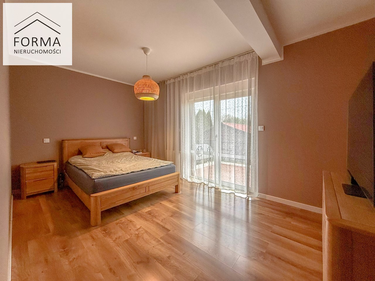 · Taras jest bardzo duży, mieści się na nim duży stół. Połączony jest z sypialnią.