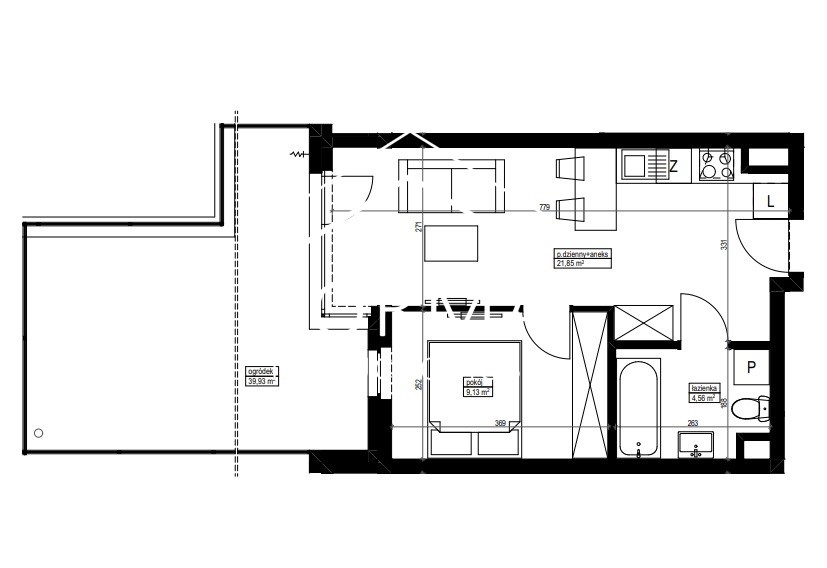 - salonu z aneksem kuchennym