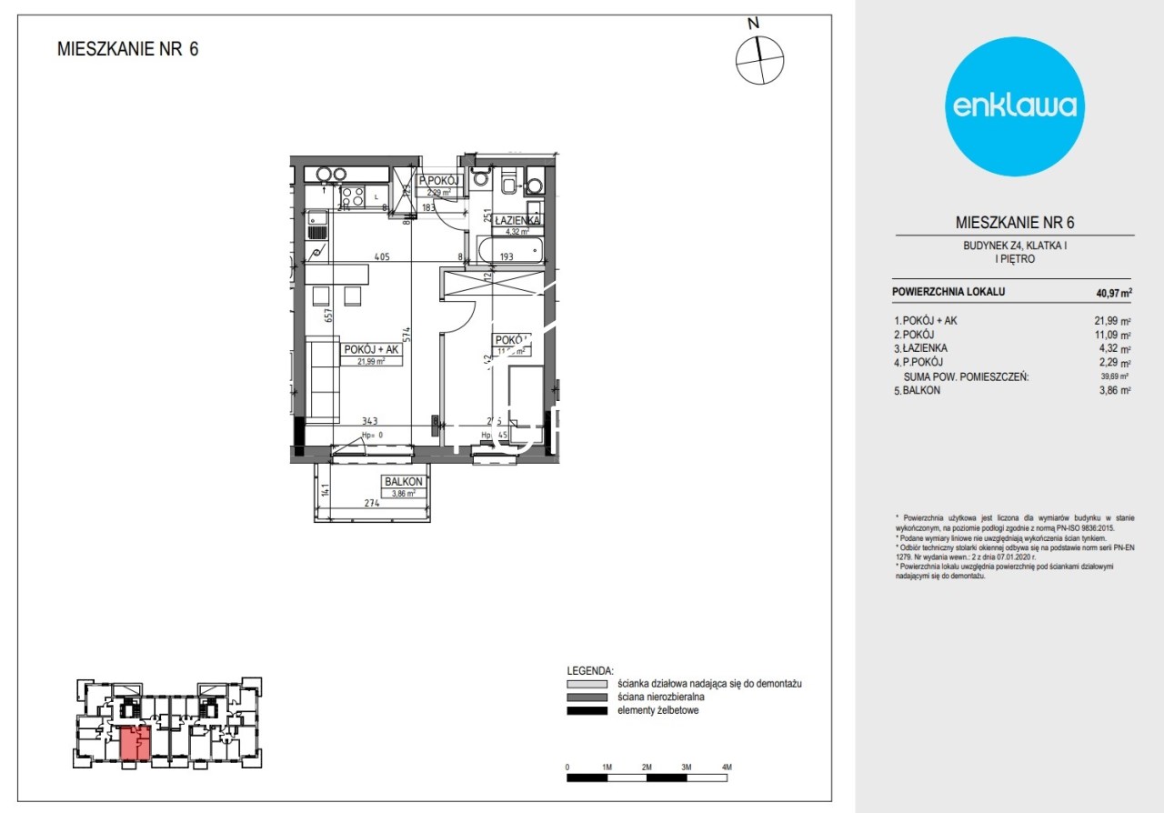 Mieszkanie o pow. 40,62 m2 składa się z :