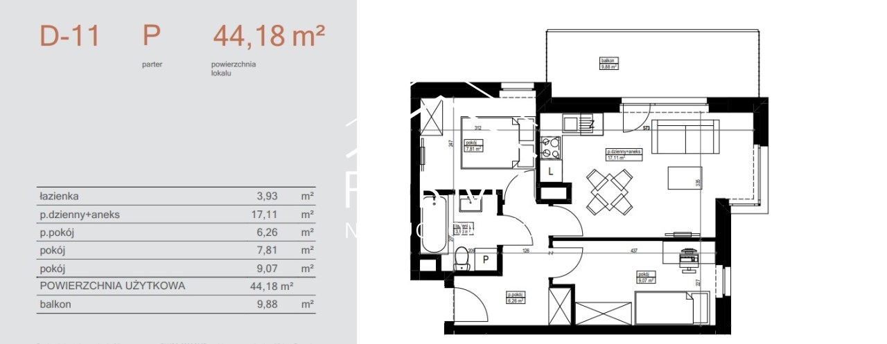 | Powierzchnia użytkowa [m2] | 44,18 m² |