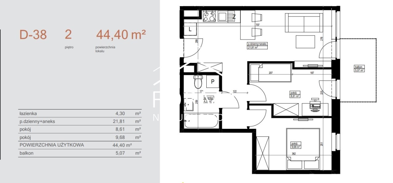 | Powierzchnia użytkowa [m2] | 44,40 m² |