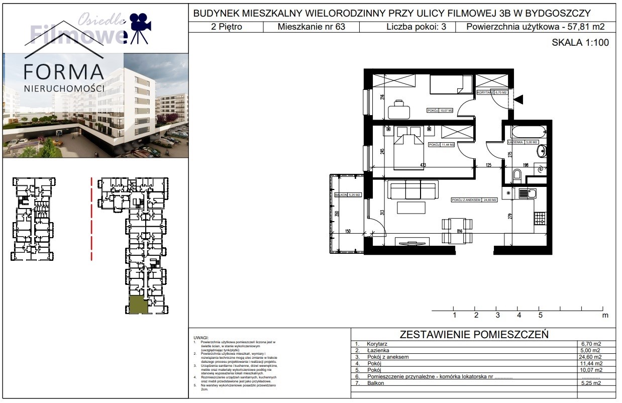 | Powierzchnia użytkowa [m2] | 57,81 m² |