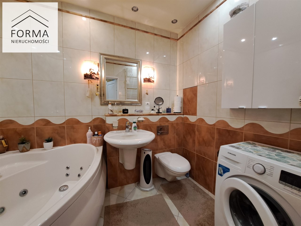 W mieszkaniu znajduje się również łazienka z wanną z hydromasażem i oświetleniem, co pozwala stworzyć prawdziwą strefę relaksu po długim dniu.