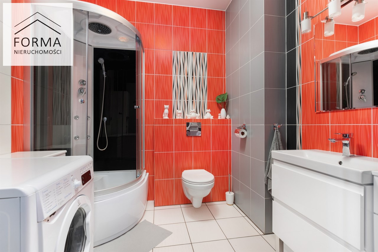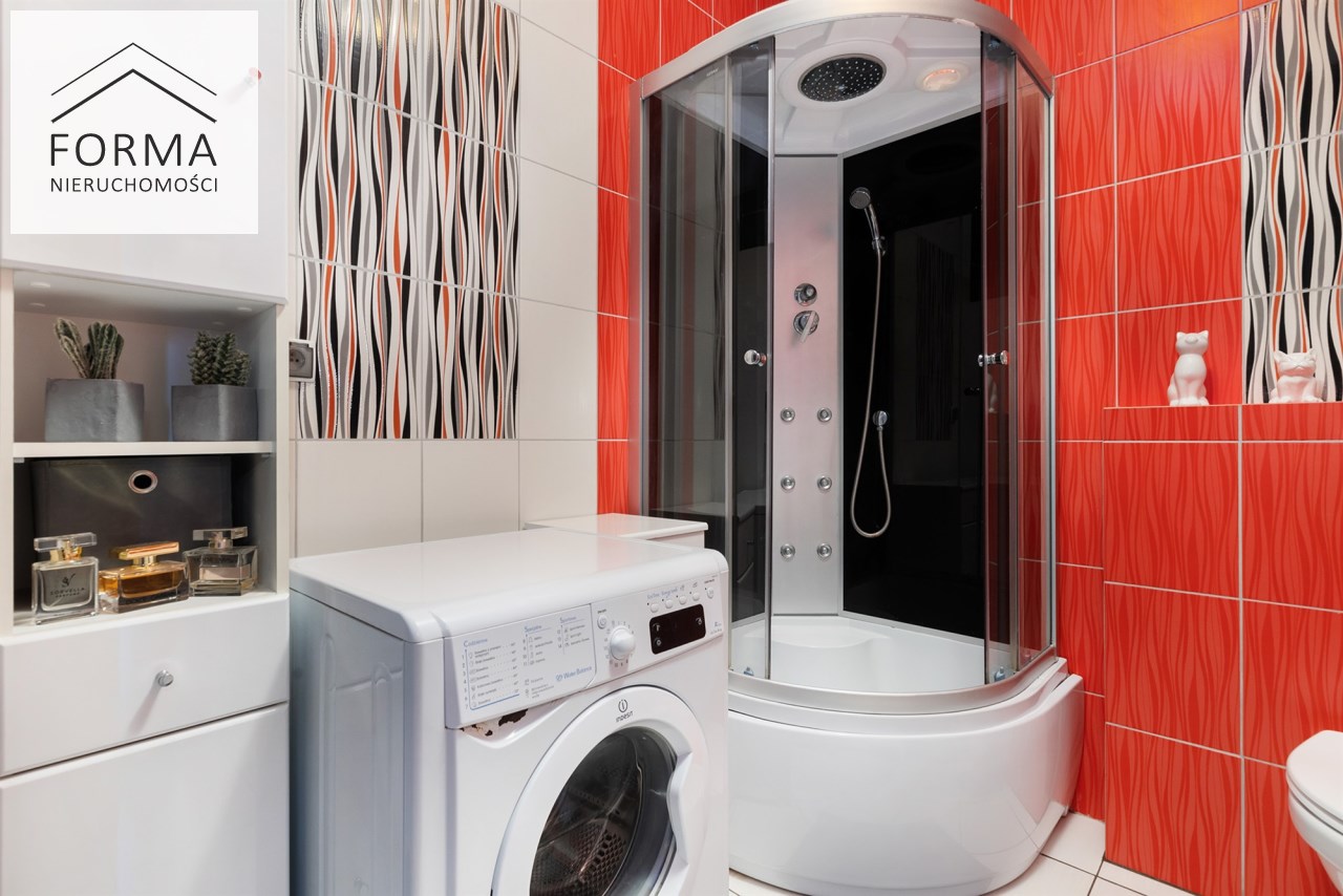 Wyposażenie łazienki | kabina prysznicowa, lustro, pralka, umywalka, WC |