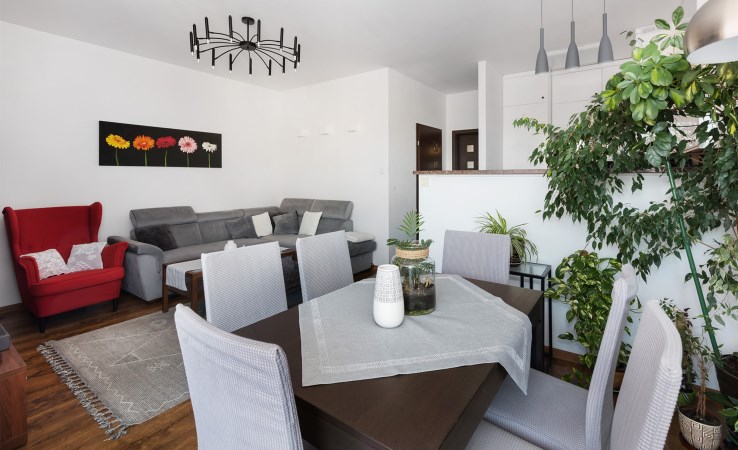 To wyjątkowe mieszkanie zostało zaprojektowane przez architekta wnętrz z myślą o maksymalnym komforcie i funkcjonalności. Każdy detal – od mebli po zasłony – został dopracowany i wykonany na zamówienie co tworzy harmonijną i przytulną przestrzeń idealną do życia.