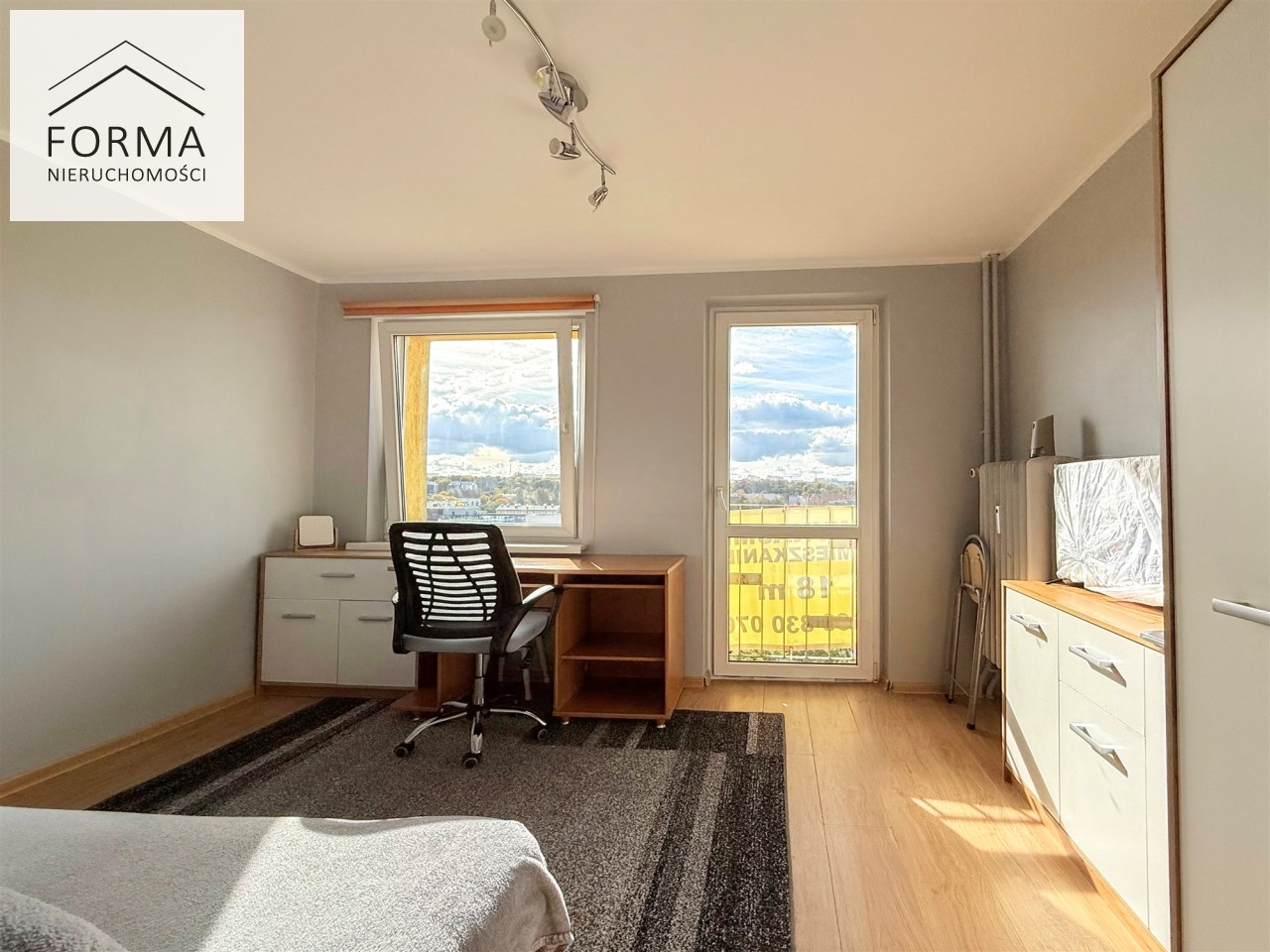 - ekspozycja południowa (mieszkanie ciepłe i słoneczne)