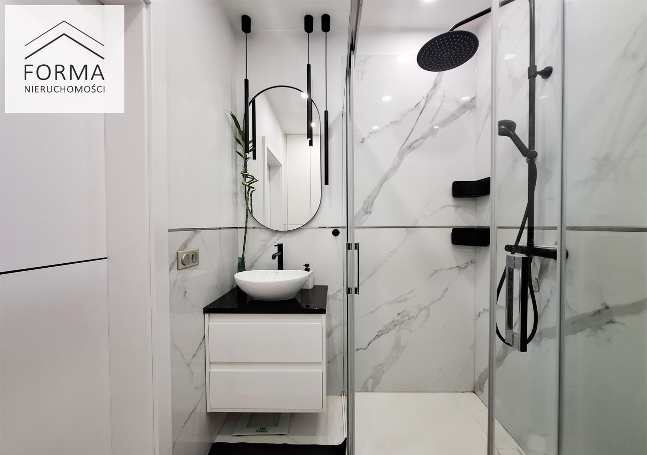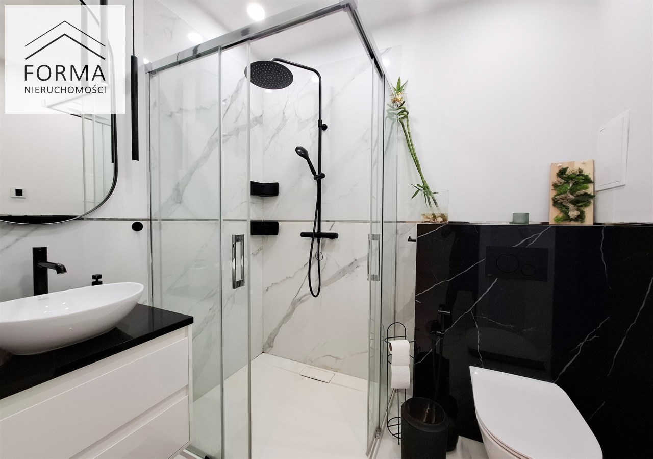 | Wyposażenie łazienki | kabina prysznicowa, lustro, natrysk, pralka, umywalka, WC |