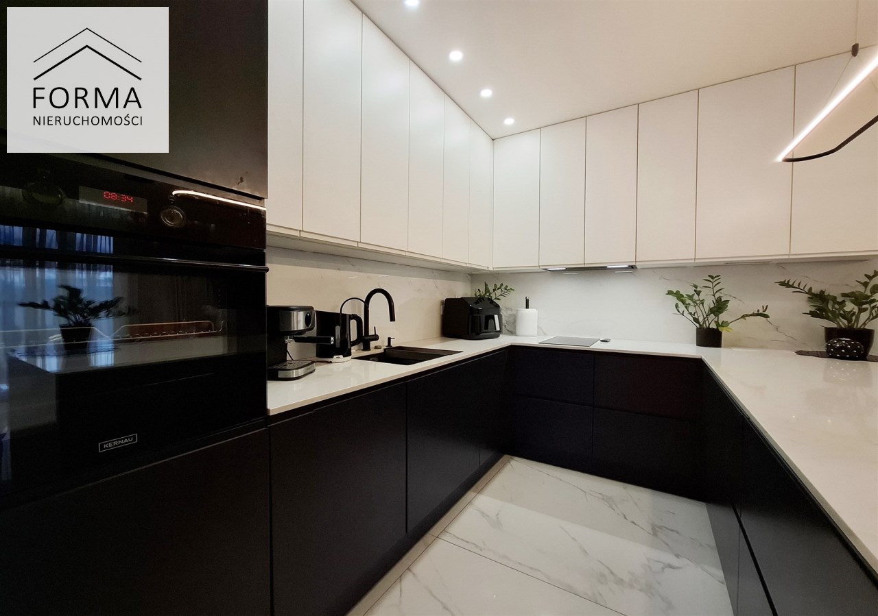 | Wyposażenie kuchni | meble kuchenne na wymiar, lodówko-zamrażarka,, krzesła, garnki, mikrofalówka, naczynia, okap kuchenny, piekarnik elektryczny, płyta indukcyjna, sprzęt AGD, stała zabudowa, wyposażenie drobne, zlewozmywak z baterią, zmywarka |